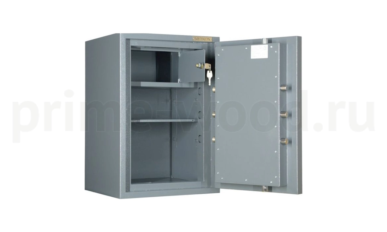Сейф односекционный СМ2-65 предназначен для хранения бумажных документов и ценностей на сумму до 3 млн. руб. для физических лиц и до 800 тыс. руб. для юридических лиц. Сейф сертифицирован по ГОСТ Р 50862-2017, ГОСТ Р 51113-97. Класс устойчивости к взлому-II (второй). Класс огнестойкости 60Б. Сейф односекционный, оснащен одной съемной полкой и Трейзером . В двери установлен ключевой замок BORDER класс А. Для облегчения процесса открытия шкафа дверь оборудована поворотной ручкой.